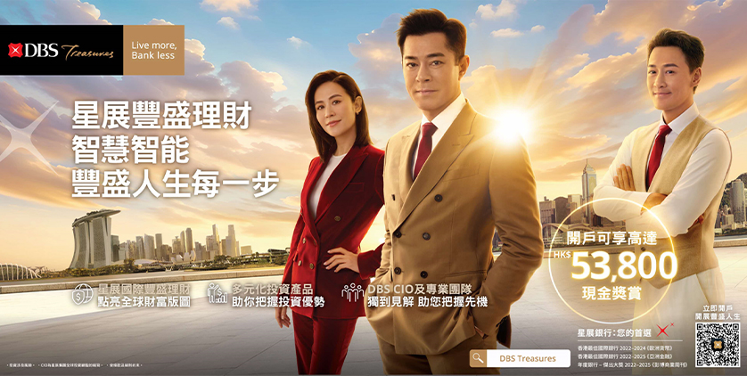 身為亞洲最大的金融服務集團之一,星展香港憑藉在新加坡與香港這兩大財富樞紐的網絡,為客戶無縫連接國際金融市場,並提供全方位跨境理財方案。星展集團的全球投資總監(CIO)及研究團隊持續為客戶帶來專業分析,協助客戶掌握全球市場趨勢,並制定符合不同人生階段的個人化投資策略。