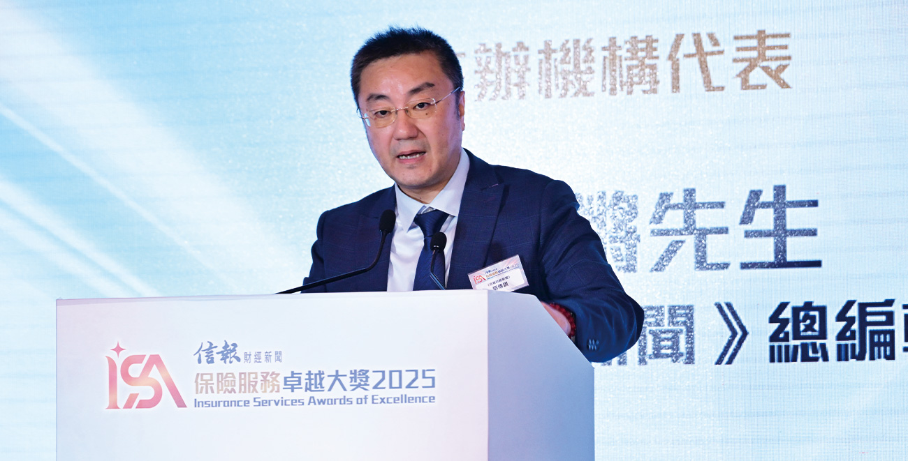 《信報財經新聞》總編輯鄧傳鏘致詞時表示,保險業對香港鞏固其國際金融中心地位有舉足輕重的作用,特區政府將繼續全力支持業界發展,致力提升整體競爭力,同時結合金融創新,鞏固香港作為國際風險管理中心及成熟完備的保險樞紐定位,並進一步釋放保險業的社會價值,造福市民與經濟。