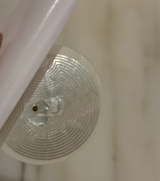 標籤中間的黑點就是晶片,在美國出產,標籤其餘生產工序便在深圳完成。