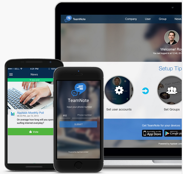 香港Startup亦有趕上移動雲端趨勢趨勢,TeamNote便是一例,它介紹自己為雲端為主的流動協作工具,功能以流動裝置為優先考慮,除了與同事通訊之外,TeamNote亦設有投票功能(例如詢問員工對新同事的看法)、工作分派、訓練程序,讓客戶可以隨時隨地透過手機有效處理各種形式的工作。