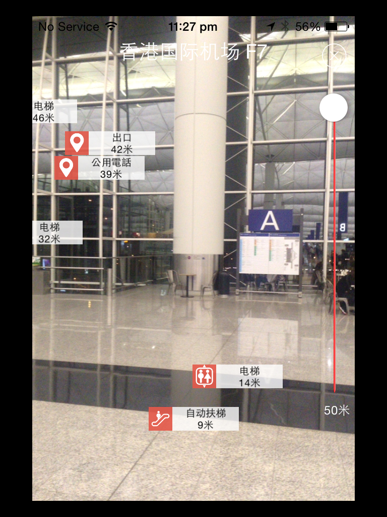 透過藍牙感測器操作,用戶可透過手機了解機場不同設施的距離。(受訪者提供圖片)